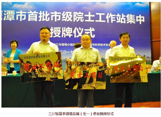发布时间:2017-06-232017年6月23日上午,全市首批市级院士工作站集中授牌仪式在鹰潭市沁庐道苑主楼报告厅隆重举行。米兰官方站网页版在线登入、江西省鹰潭铜产业工程技术研究中心、江西贵溪经济开发区三家单位在全市率先建立了市级院士工作站。三川智慧总裁李强祖出席了授牌仪式。